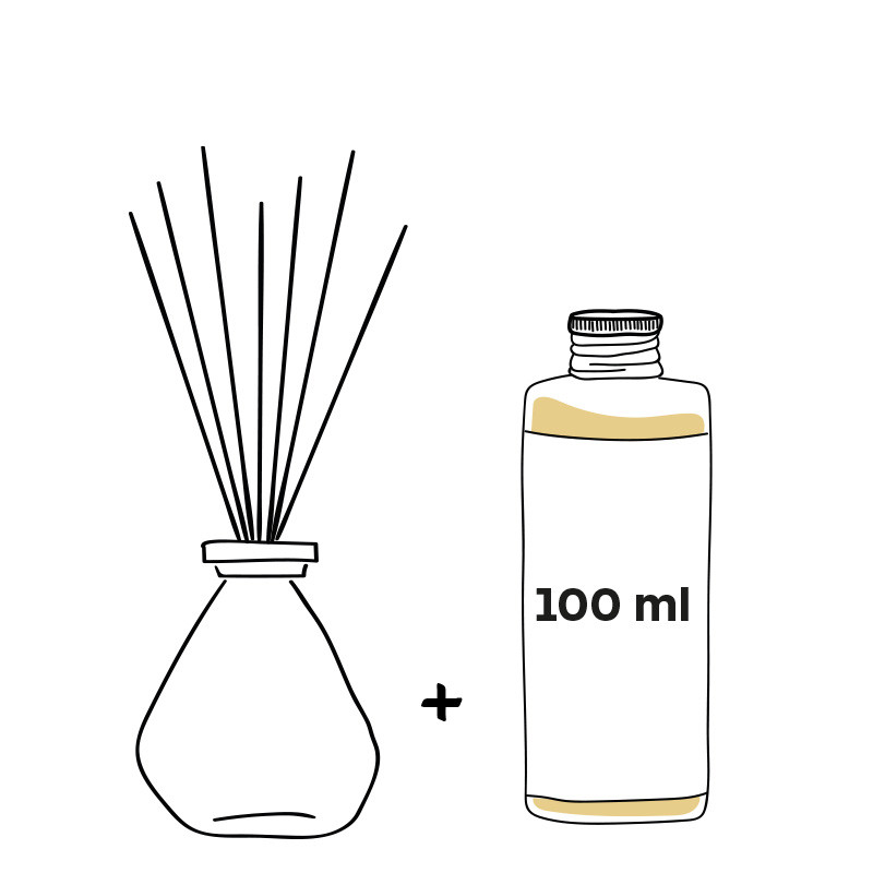 Contents: 100 ml • Refillable bottle + 10 natural rattan sticks (23 cm)