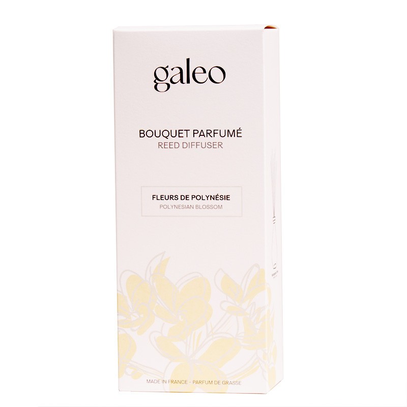 Embark on a sensory escape to exotic islands with our Polynesian Blossom reed diffuser. Made in France in our workshops, this home diffuser combines the floral softness of tiaré and frangipani flowers with a subtle diffusion thanks to natural rattan sticks. Its elegant refillable glass bottle, accompanied by natural rattan sticks, ensures a gentle diffusion and a refined decorative touch to your interior.