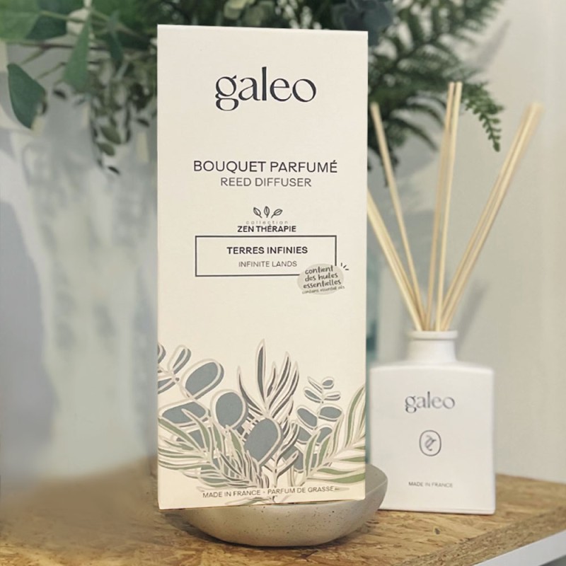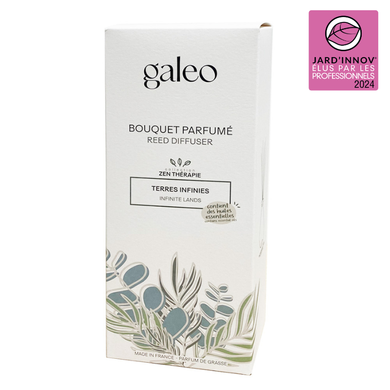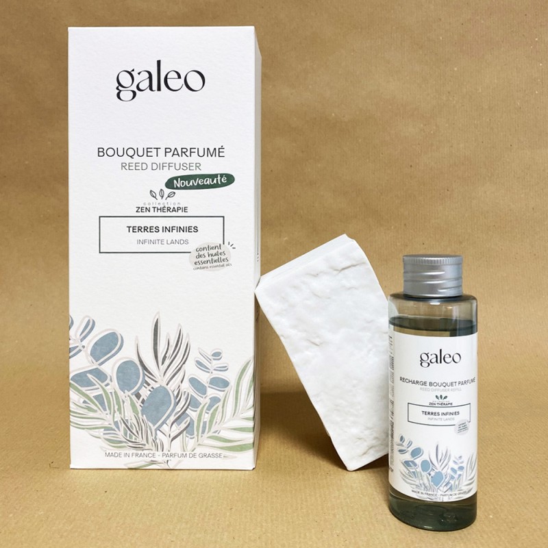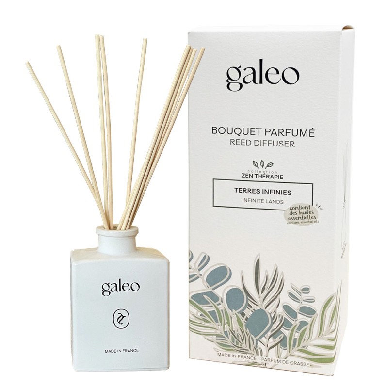 Create a calming atmosphere in your home with the Infinite Lands reed diffuser. Made in France, in our workshops, this home fragrance diffuser combines essential oils of patchouli, cedar, and eucalyptus globulus to create a warm and enveloping woody ambiance. Presented in an elegant, refillable glass bottle, it charms with its sleek design and eco-friendly conception (100 % recycled, 100 % recyclable box).