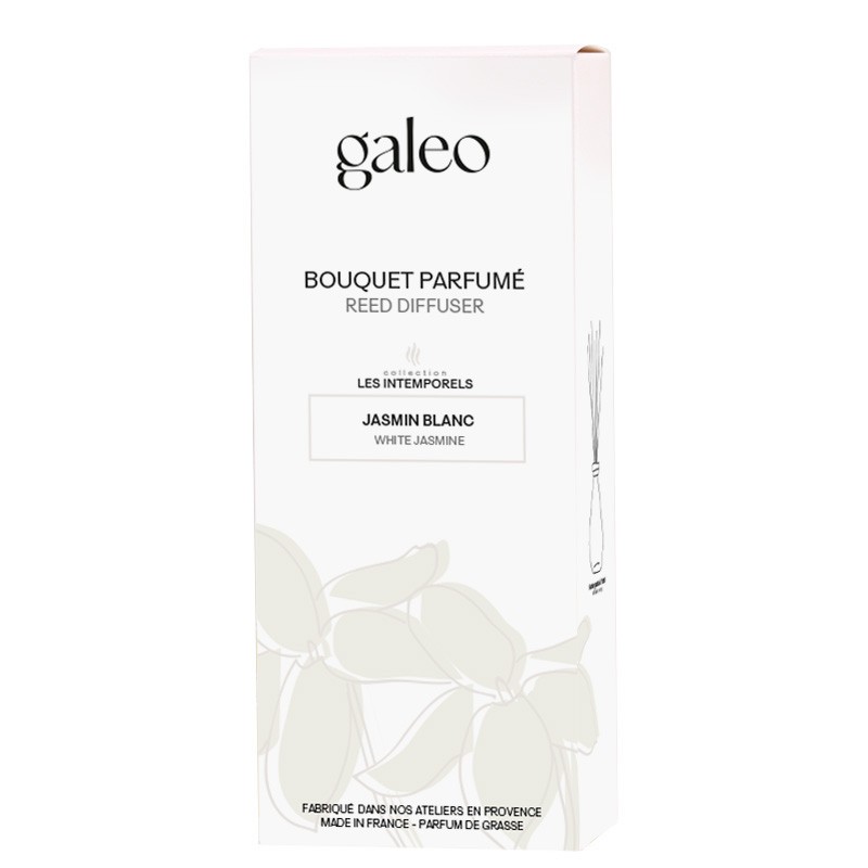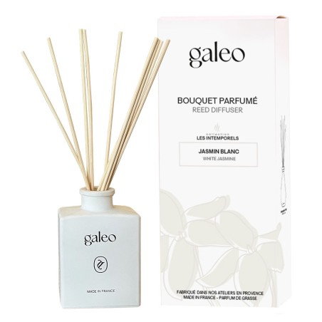Discover the delicacy and purity of white jasmine with this exceptional reed diffuser. Made in France in our workshops, this diffuser combines the bright and captivating fragrance of Grasse white jasmine with a gentle diffusion thanks to the rattan sticks. Its refillable glass bottle and sleek design make it an object as aesthetic as it is perfect for harmoniously scenting all your living spaces.