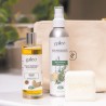 Its 100% organic formula, Ecocert certified, combines five essential oils: sweet orange, pine, cypress, lavender, and bitter orange.