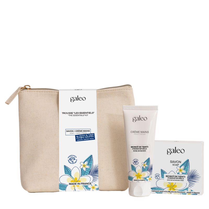 The Monoï oil used is 100% of natural origin, obtained through the traditional maceration of tiaré flowers (Gardenia taitensis) picked at bud stage in refined coconut oil (Cocos nucifera). This time-honored process ensures an authentic and fragrant care experience. Both the soap and hand cream are made with natural and organic ingredients, crafted in France.